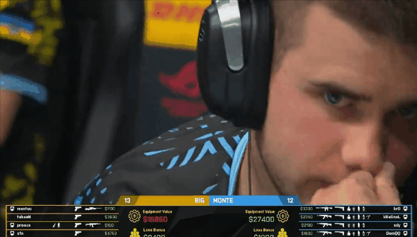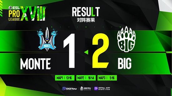BIG对于自己的选图有极高的把握,他们在进攻方不断调动Monte的防守,通过拉扯找出Monte的破绽,率先拿下赛点。来到赛点局的Monte经济爆炸,他们根本无力顶住BIG 的进攻,tabseN更是枪法爆发直接将Monte的A点打的千疮百孔,轻松以16-13收下了比赛的胜利!