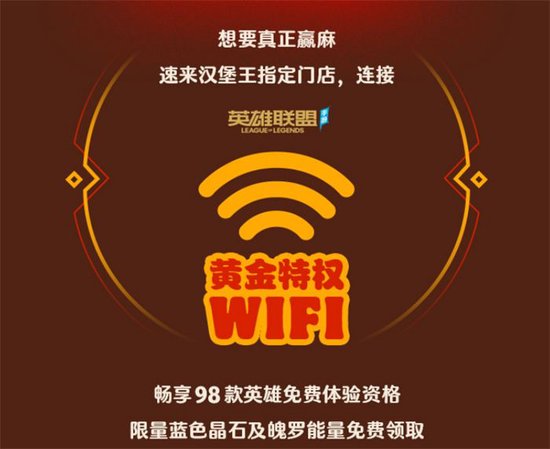 与新品同步登场的是,本次联名合作将推出专属的《英雄联盟手游》福利活动!从9月13日起,消费者前往汉堡王中国部分配置英雄联盟手游商户特权的门店,连接汉堡王门店Wi-Fi,不仅可以免费使用98个英雄联盟手游的英雄,还能免费领取限量蓝色晶石及魄罗能量。