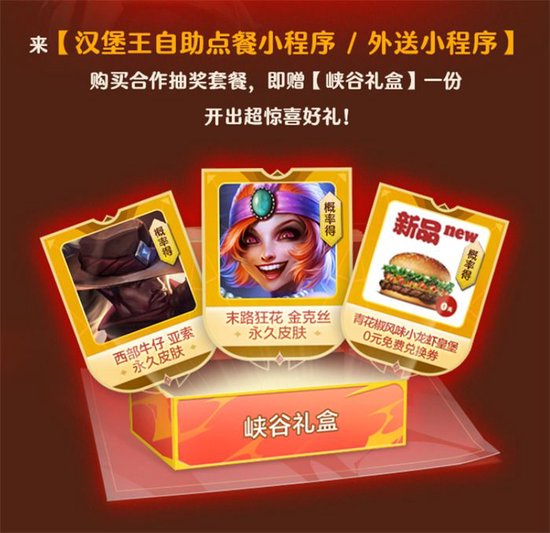 此外,汉堡王还和《英雄联盟手游》推出合作抽奖套餐,奖品内容包括西部牛仔 亚索永久皮肤,末路狂花 金克丝 永久皮肤,青花椒风味小龙虾皇堡0元免费兑换券等。