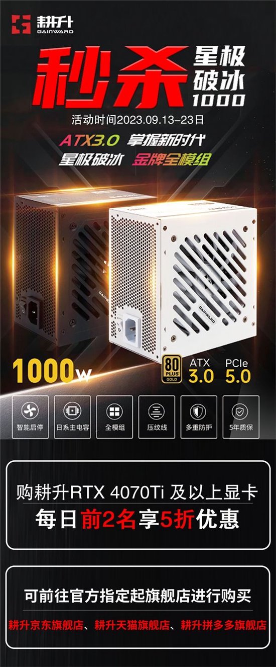 在2023年9月13号-9月23号期间,耕升为玩家们带来了超值福利活动!本次优惠活动在耕升京东,天猫,拼多多旗舰店均可参加,各种优惠活动可谓是让玩家们心动不已,接下来让我们详细看看本次带来的超值活动吧!