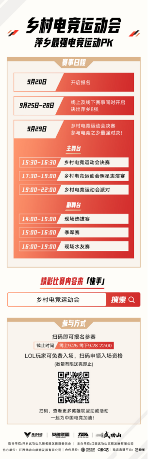 无法到场的小伙伴也可以通过独家直播平台【快手】,搜索【乡村电竞运动会】在线观看精彩赛事和活动内容。