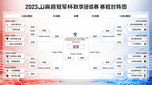 2023JJ麻将冠军杯秋季团体赛小组赛段圆满落幕,16强名单正式出炉!16支队伍将于10月6日-11月1日打响4强席位争夺战,冲刺冠军荣誉以及121万元+16.3亿JJ金币总奖励!他们分别是: