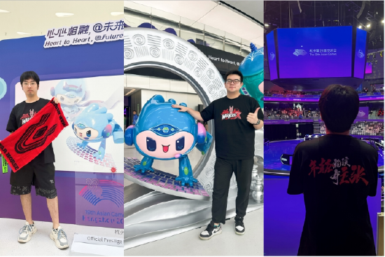 相比战马之夜的热闹非凡,战马能量观赛团则用现场助威的方式,更加沉浸式地体验了亚运赛场的氛围。亚运会电子竞技项目《英雄联盟》的中韩大战当天,多位身穿战马能量统一服装的粉丝亮相杭州电竞中心,为中国队加油。