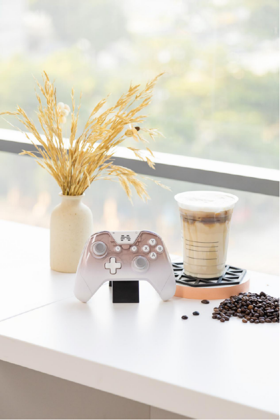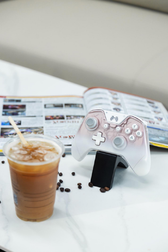 与一般黑白配色的手柄不同,作为斯巴达系列的新品,这次北通斯巴达3采用了玫瑰金渐变色搭配芯片纹的设计。部分富含想象力的玩家认为,这款新品在形象上更接近于可乐软糖和拿铁。