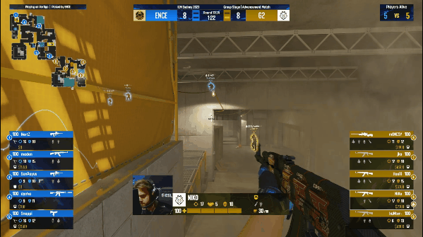 易边再战,手枪局G2进攻中路,HooXi砍下三杀,但Snappi残局双杀更胜一筹,帮助ENCE扩大领先优势。好在Niko及时觉醒,化身泥头车,第十五回合他在大坡打出关键突破,把对手打入ECO,帮助队伍扳平比分,来到第一个长枪局又是Niko打出首杀,G2反超比分,第二十回合,G2在大坡用手雷炸烟成功拿到人数优势,后续进攻A区也没有失误,成功取得赛点,最终局虽然dycha双杀打出优势,但Niko两个精准的爆头结束了残局,把比分定格在13-8。