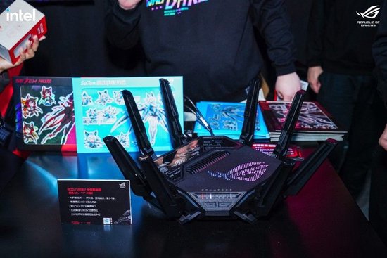当然,除了新晋明星八爪鱼7之外,在本次ROG DAY活动现场还有不少大家熟悉的老面孔出现,比如上代电竞路由“天花板”ROG GT-AX11000 Pro。招牌的八天线设计和信仰拉满的ROG点阵式灯效,4核2.0GHz处理器、1GB内存和256MB闪存组成的超豪华配置更为其提供了澎湃的性能,无线带宽达到了恐怖的11000 Mbps。