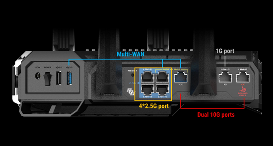 八爪鱼7采用博通四核2.66GHz CPU+2GB DDR4内存的旗舰级配置,三频并发近13000M,包含4804MHz电竞专属5G频段。接口方面配置了豪横的双10G网口搭配四个2.5G网口配置,支持WAN/LAN聚合玩法,同时还支持AiMesh 2.0大户型组网系统。