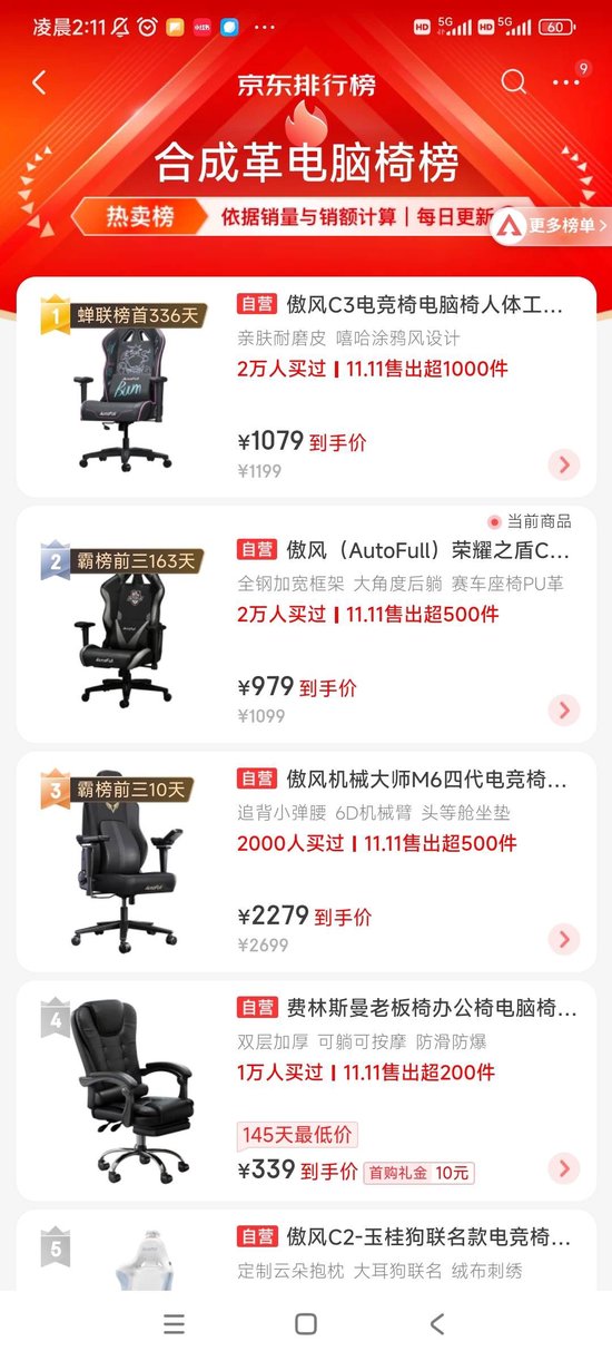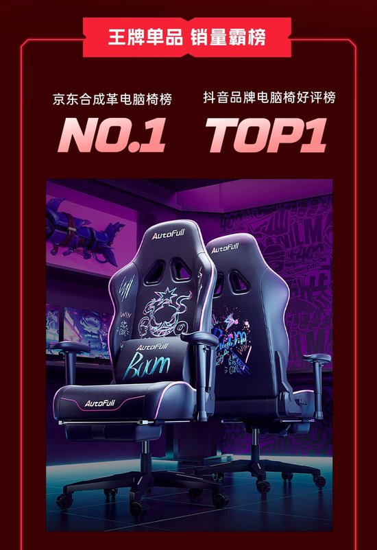 京东榜单显示,傲风荣耀之盾C3系列,傲风机械大师M6霸榜前三,其中傲风荣耀之盾C3系列高居合成革电脑椅榜·Top1,蝉联榜首336天;