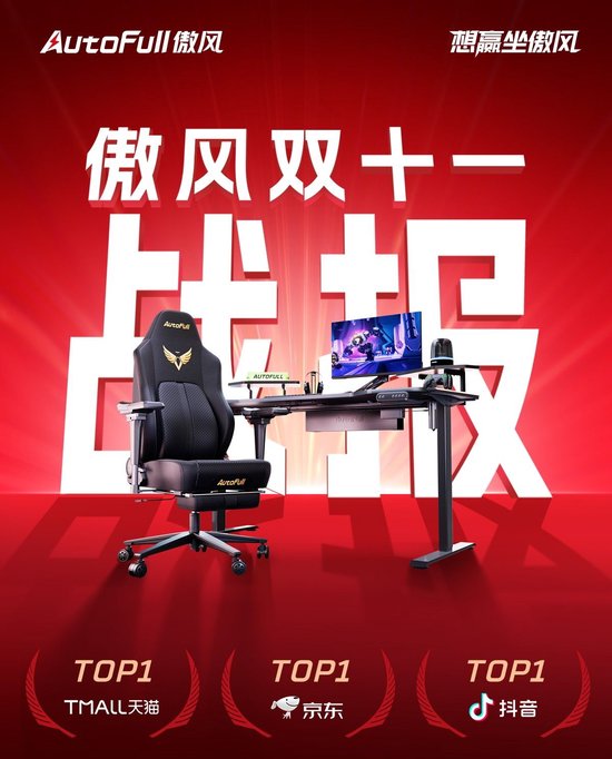 2023年双11,AutoFull傲风,在电竞桌椅市场销售额再度称霸,这不仅证明了追风者对傲风品牌和产品的认可,也进一步印证AutoFull傲风,在电竞桌椅市场的领先地位。傲风也将持续开拓创新、不断进行产品主动迭代升级,期待为玩家们创造更多精彩产品。