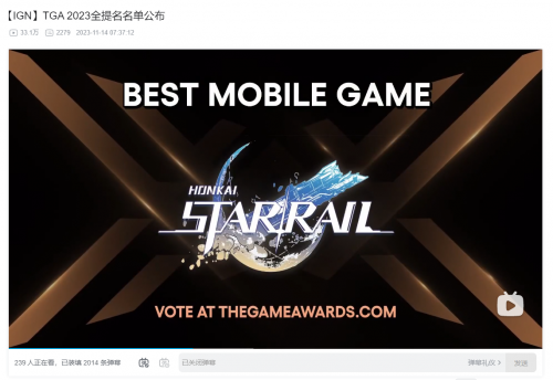 因此,当今年TGA的最佳手游提名中出现了《崩坏:星穹铁道》(以下简称为《星铁》)的名字时,几乎没有人会感到意外。《星铁》虽然才只开服了半年左右,但无论是在营收、流水数据,还是社区热度与讨论来看,《星铁》的表现都显得十分亮眼。能入围TGA最佳手游提名,更是说明了游戏已经在世界范围内获得了广泛的认可。