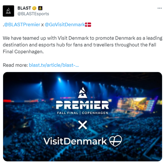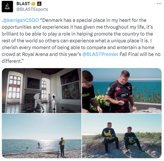 “BLAST今年选择在丹麦举办如此多的电竞赛事,证明了丹麦在电竞和游戏领域的卓越地位。这也是展示丹麦作为一个创新和现代国家的绝佳机会。与BLAST的合作为我们创造了一个独特的机会,让我们可以接触到全球观众,并宣传丹麦。我们的目标是激励世界各地的粉丝访问这个国家,因为这里是一些CS传奇选手(如karrigan)的故乡。”