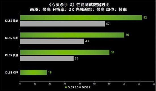 接下来是2K分辨率的测试。同样在关闭DLSS的情况下,游戏甚至只能达到平均18帧。在DLSS 2下,耕升 GeForce RTX 4060 Ti 踏雪依然处于一个较低的平均帧数,只有在性能模式下才能勉强流畅运行,达到平均57帧。而在开启DLSS 3.5后,游戏帧数得到质一般的提升。耕升 GeForce RTX 4060 Ti 踏雪则在性能模式下能达到平均82的帧数,在质量模式下也能保持在平均60帧的流畅水平。