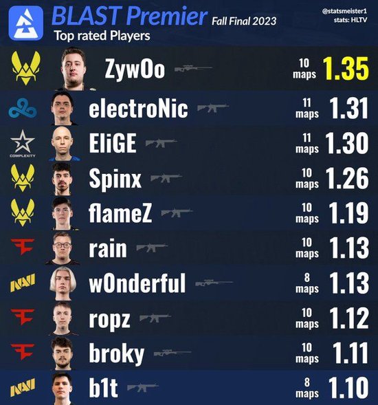 随着BLAST Premier秋季总决赛的完美落幕,外媒也盘点了本届赛事中rating最高的CS选手。