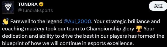 Tundra Esports战队官宣教练Aui_2000正式离开战队: