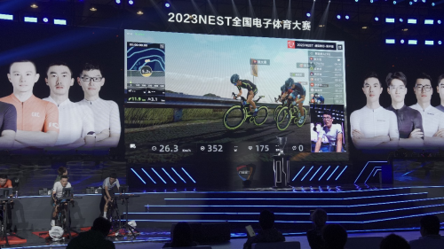 于是今年的NEST年度总决赛的舞台上,除了传统电竞项目《英雄联盟》,还纳入了虚拟体育项目《虚拟骑行》。虚拟骑行是一种利用虚拟现实技术,将用户置身于逼真的虚拟场景中,通过骑行软件+骑行设备模拟传统骑行的一种新型的运动方式,让用户体验到与户外骑行相同的沉浸感。《虚拟骑行》同样考验参赛选手的体能和意志力,台上的选手们汗流浃背,甚至咬牙坚持到戴上“痛苦面具”,台下观众欢呼加油不断,与关注度最高的传统电竞项目《英雄联盟》的热血激烈程度旗鼓相当。传统电竞与虚拟体育项目在NEST舞台相互融合,共同绽放精彩,点燃热情,赋予玩家前所未有的电子体育观赛感。