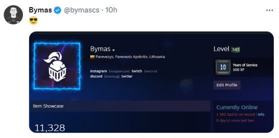 Aurimas Pipiras | Bymas便不幸中招,不过现在从他steam页面中可以看出,账号已恢复正常。