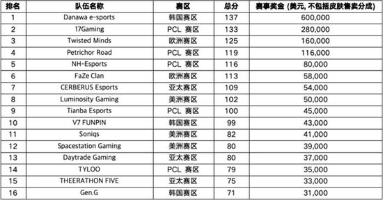 排名第二的是中国战队"17 Gaming"。17以强大的作战能力与DNW等队伍一同展开了激烈的冠军争夺,但最终以133分惜败位居第二,"Twisted Minds"则位居三位。