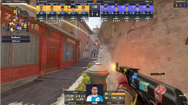 来到决胜图Mirage,Cloud9先防守。拿下手枪局的C9顺利取得2-0的领先,来到长枪局MIBR道具量不足,中路争夺中B小的Ax1Le发挥,C9继续拿分。不过MIBR继续自己的A点攻势,爆弹强攻的补枪配合insani发挥出色带领巴西人追回比分,Cloud9这边一直丢分心理压力非常大,打法也越来越保守,但这并不能给他们带来更多的分数,最终他们半场4-8落后。