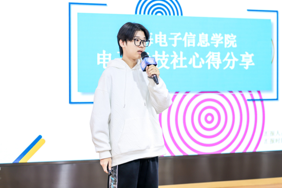 活动现场邀请到本届营员代表上海电子信息职业技术学院电竞社社长景俊贤分享上海电子信息职业技术学院电子竞技社的运营思路与成效。
