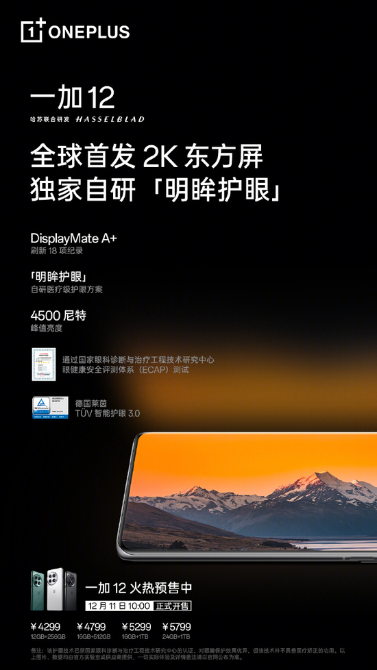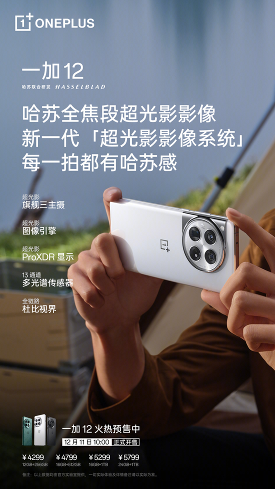 一加十年超越之作一加 12 将于 12 月 11 日10点全渠道正式开售,起售价 4299 元。