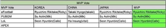 日本队获得《实况足球》和《APEX英雄》总冠军,Ricky当选《实况足球》项目MVP。