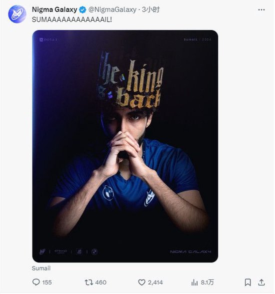 在队伍大换血后,刚刚,Nigma官推首先公布了新赛季阵容中单:Sumail强势回归。此前Sumail曾短暂租赁到了中国战队Aster,但成绩不佳,淹死在了TI12中国区海选上。