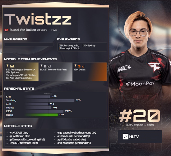 Twistzz为什么能被选为HLTV年度最佳选手TOP20?