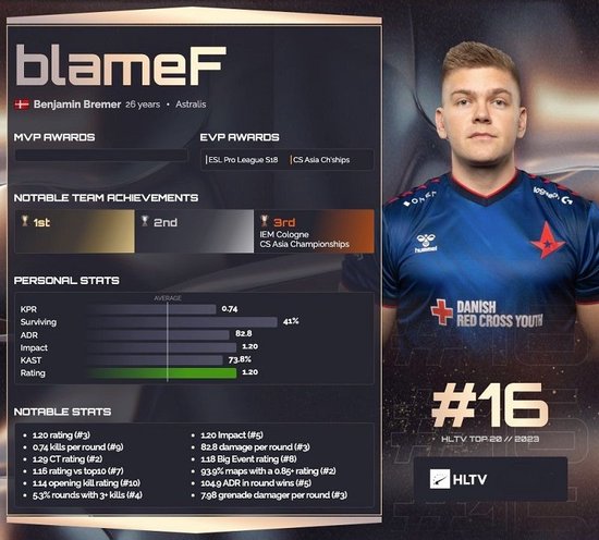blameF为什么成为HLTV 2023年第16位最佳选手?