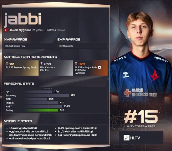 jabbi为什么成为HLTV 2023年第15位最佳选手?