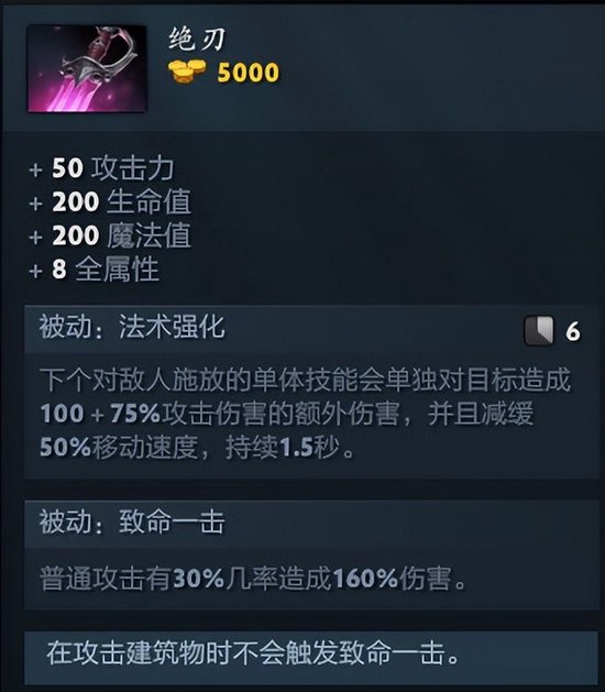 新版血棘的配方没有了法师克星,智力和攻击力加成略有削弱,但新配方里的振奋宝石大幅提高了攻击速度,标枪的加入让血棘获得了被动:穿刺效果,每次攻击有40%几率无视闪避并造成额外60点魔法伤害;主动:灵魂撕裂的全新效果,所有对目标发动的攻击会额外造成60点伤害并且拥有克敌机先,让新版血棘集火输出的表现堪称爆炸。这一波改动利好了拥有远程+召唤物集火能力的英雄,也削弱了需求法师克星带来魔抗坦度的幻象系英雄。