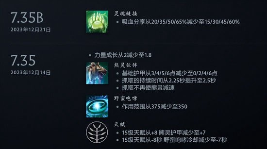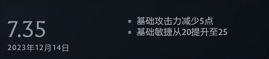 7.35版本最轮椅的装备炎阳纹章被削弱后,冥界亚龙的胜率也受到了些许影响(指0.8%),但冥界亚龙凭借着7.35版本的巨幅加强(无视免疫+不可驱散的破坏大招)以及与新装备的适配(没错,指圣斧亚龙),让他能够胜任一号位二号位以及三号位,且胜率都还不错,也是客串三巨头之一。现版本冥界亚龙多样的出装使他能应对各种阵容,对面法师多?法师克星+永世法衣的法坦套满上;对面物理狠?飓风长戟+阿哈利姆神杖管住。随着这些属性装备的积累,也让冥界亚龙在25级选择“变为全才”天赋时,能够成为基础攻击力近乎翻倍的怪物。