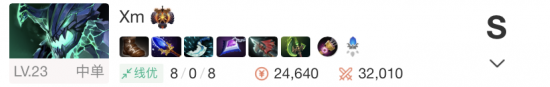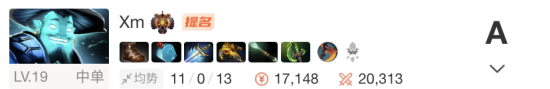 当然除了重温当时的感动外,笔者还想更深层次的找出AR战队能够翻盘的原因,为何他们敢于放Quinn选手的石鳞剑士?如果输了不是“为什么不ban滚滚”全锅吗?带着这个问题,一起来看AR的中单选手Xm在三把制胜局的出装: