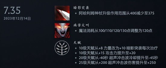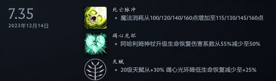 7.35版本最迷茫的二号位英雄,究竟是走圣斧靠着天生670的攻击距离普攻输出,还是继续阿哈利姆神杖+虚灵之刃的秒杀套路,难以抉择。本来大家都以为虚灵之刃的改动,配件有以太透镜利好莉娜的施法秒杀,可实践来看莉娜还是挺吃慧光作为配件带来的技能增强。一番改动下来本身就已经高不成低不就,25级神灭斩变纯粹伤害的天赋还没了,真是雪上加霜。