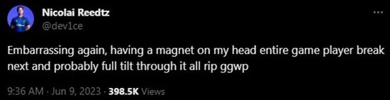 经过IEM达拉斯的个人巅峰之后,休赛期前的最后一站BLAST Premier 春季决赛上记录了device今年唯一的糟糕表现。开场不敌FaZe后,Astralis与Complexity在一场系列赛中大战90回合,并最终饮恨败北。北美战队阵中的南非选手Aran Groesbeek | Sonic在决胜图Overpass上成为了device的噩梦,一举将丹麦人淘汰出局,以至于赛后device在个人社媒上表达了自己的强烈失落。