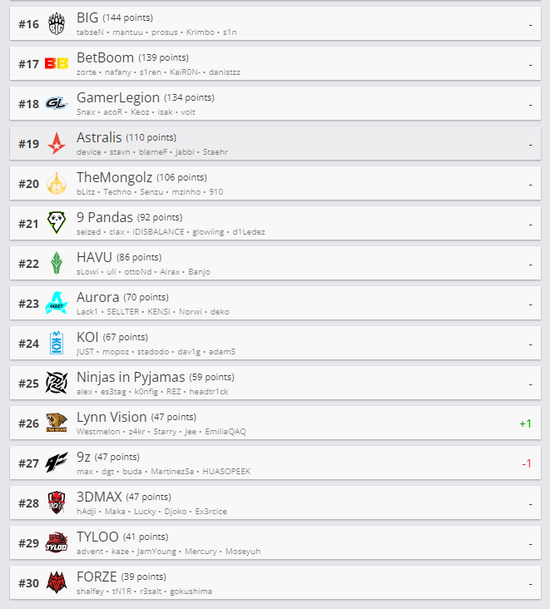 今日,HLTV更新了本周的世界排名,由于最近处于休赛期没有大型比赛,前三十名的唯一变化是Lynn Vision提升1名来到26位。