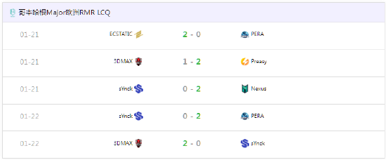 哥本哈根Major欧洲区RMR封闭预选赛最后机会阶段,Preasy、ECSTATIC、Nexus、PERA、3DMAX获得最后五个RMR资格。
