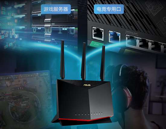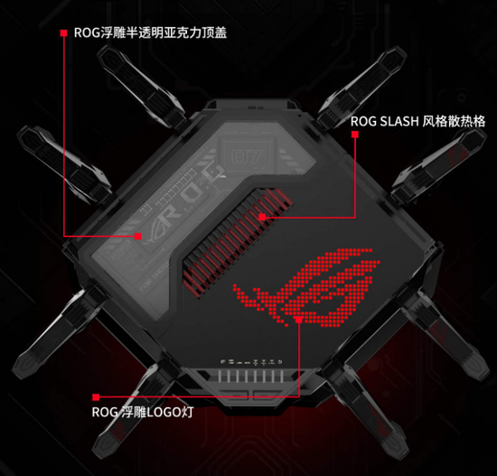哪款路由器有二次元品牌代言人?那当然是华硕天选路由器,日蚀灰的机身、机甲纹理和魔幻青天选logo形状的rgb呼吸灯外观设计,让华硕天选路由的高科技感瞬间拉满,七种欢动电竞炫光打造沉浸式电竞氛围。