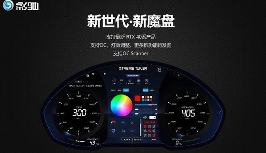 影驰的RTX 40系产品还加入了影驰 XTRME TUNER 新世代‧新魔盘,支持OC、灯效调整,支持OC Scanner等功能!让用户实现超频,温度监控等等,还有更多新功能等待发掘,尽请期待!