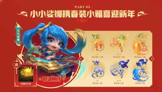 为迎接龙年的到来以及3.5赛季的回归,《云顶之弈》将开启“祥云从龙,好运开局”活动。连续五周,周周送福利!只要弈士们在每周完成指定的任务,便可免费获得〖琉璃 小雅〗、〖至臻 龙的传人 小小李青〗夺宝免费券、〖金龙摩天大楼 棋盘〗夺宝免费券、〖古琴余韵 小小娑娜〗夺宝免费券、随机春节小小英雄等福利。