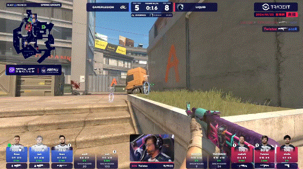 下半场攻防转换,GL来到进攻方,进入包点下包后拿下手枪局,次回合Liquid强起在B区精彩发挥,先是总监鸟狙爆头,然后二楼下CT双枪与B小队友配合翻盘GL。翻盘后的Liquid势头越来越猛,GL则是有点找不到方向,Liquid 5连胜直接拿到赛点,赛点局的Liquid防守更是各点开花,强势总结比赛。