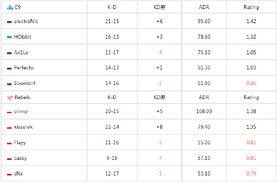 攻防转换Rebels rsuh B,casey绕柱完成1v2残局取得手枪局胜利。来到长枪局Rebels变速爆弹A区,C9枪法破解进攻,将对手送入经济局。暂停调整后的Rebels抢下中路夹击A区,CT防守出现漏洞,胜利天平开始倾向Rebels。关键时刻A2电子哥重拳出击豪取三杀,重创对手经济,C9扳平比分。然而sNx英雄AK发挥作用,VIP首杀击落AWP,Flayy捡起大狙翻盘成功。手感火热的olimp丝血突破B区完成三杀,Rebels拿到赛点。C9不慌不忙重防A区追回一个赛点。Rebels稳扎稳打A区爆弹终结比赛。