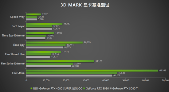 通过3D Mark基准测试,可以发现耕升 GeForce RTX 4080 SUPER 炫光 OC相比于前代显卡来说有很大的分数提升。