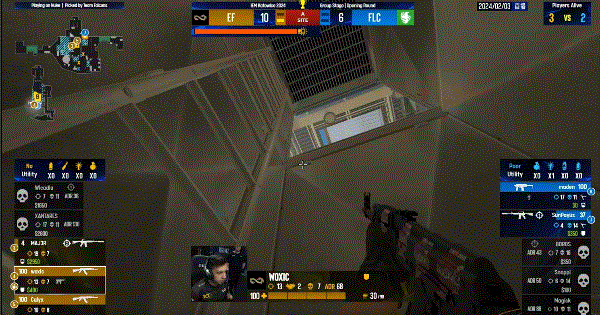 来到Falcons选图Nuke,Falcons先做进攻方,开局EF XANTARES外场拿到双杀打出人数优势,随后B区队友也架住想要占领包点的土匪赢下手枪局,次回合Falcons强起手枪RUSHA,但是被包点MAJ3R吹风机接住,残局更是再斩三人拿到五杀击溃Falcons。
