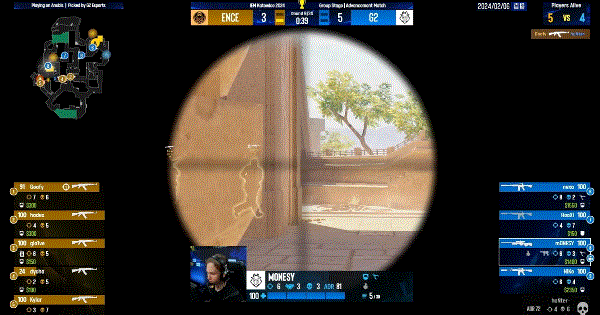来到长枪局,ENCE在中路做完拉扯过后爆弹进攻A区,顺利进入包点拿下长枪局拉开比分来到5-0。第六回合,B二楼土匪率先击杀m0NESY,ENCE随后进攻A区,nexa与表哥双压A1后回头被拱门进入包点的土匪架住,ENCE把比分差距拉开。次回合G2强起依靠枪法发挥成功翻盘,G2拿到第一分,扳回两分的G2第九回合选择中路前顶刚好遇到出中路的ENCE,一波枪法火拼后被打出零换三,好在Hooxi精彩发挥拿到四杀赢下胜利。被连扳四分的ENCE也是马上调整状态赢下最后两个回合,上半场结束ENCE进攻方8-4领先。