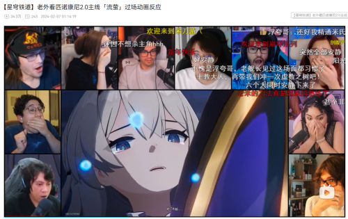 除了角色攻略这种早已成为标配的内容外,随着新版本的更新,像是“流萤被刀”等一些游戏内名场面的“切片”,以及各大up主观看其他新剧情的反应合集,成为了在社区里风靡一时的内容。