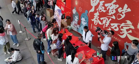 除了领取大师笔墨为新春添福之外,到场的玩家朋友还积极参与线下互动活动,领取大师手笔“福禄寿喜”春联礼盒。