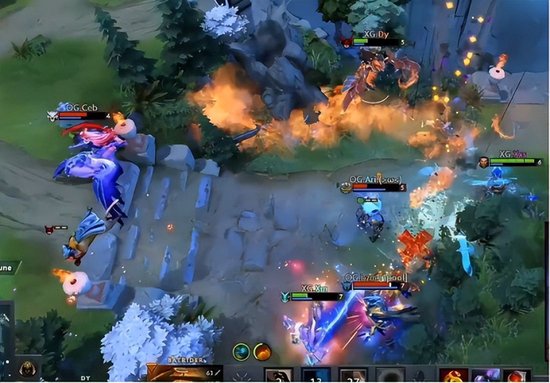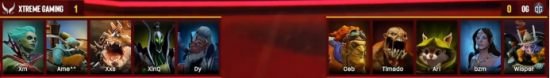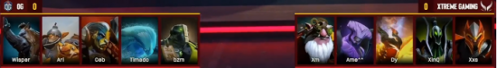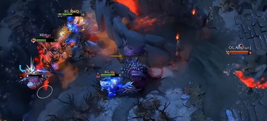 此时OG五人经济相当良好,团战XG被各种拉扯,飞机还没开打就被耗掉半血,被蝙蝠带狗直接秒掉。随着飞机DP的倒下XG只得打出GG,双方战平。