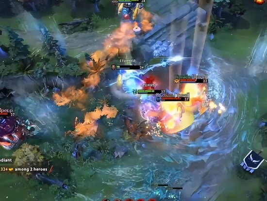 4分钟土猫欲中路单杀火枪,两边酱油全部赶到,火枪依靠散弹不停周旋,成功反杀两人拿下一血。同时炸弹T下抓龙骑也未果,XG前期取得了不小优势。