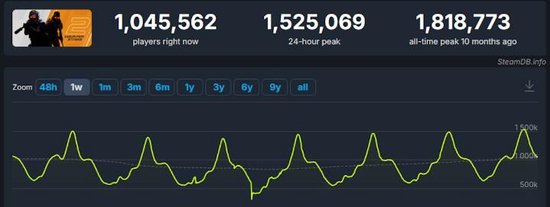 根据数据网站的统计,在3月9日CS新版本再次打破了之前创造的在线玩家记录,昨天共有1,525,069名CSer登陆游戏,创下历史新高。