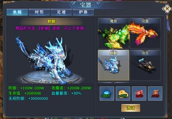 当然,如果你选择氪金,还会得到爆肝玩法之外的另一层乐趣:前期的各种材料装备和属性加成可以直接购买,到了第13大陆,专属羽翼、特殊时装、超神器打造、坐骑系统、足迹系统、护体系统统统开放,让氪金大佬们完全占据新资源,优先发展更快通关,感受降维打击遥遥领先的至尊体验刺激。